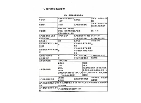 云南歐亞乳業(yè)有限公司(一廠)信息公開